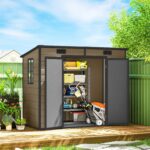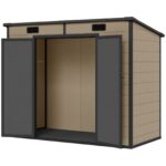 Compact, complete, and ready to go — the Outsunny 8 × 4 ft Outdoor Storage Shed in Light Brown is a full-featured resin storage unit that brings genuine shed-grade quality to smaller yards, patios, and side passages. Constructed from 12mm thick polypropylene resin reinforced with an aluminum frame, this shed is waterproof, UV-resistant, and built to stand up to all-weather outdoor use year-round without ever needing painting, sealing, or rust treatment. The warm Light Brown finish blends naturally into garden and lawn settings, giving the shed a tidy, permanent look that complements rather than clutters your outdoor space. A transparent window on the side panel lets in natural daylight, making it easy to see and access contents without hunting around in the dark, while two built-in vents maintain steady air circulation to keep humidity low and prevent musty odors from building up inside. The sloped pent roof channels rain and snow efficiently away from the structure to prevent water pooling on the surface.