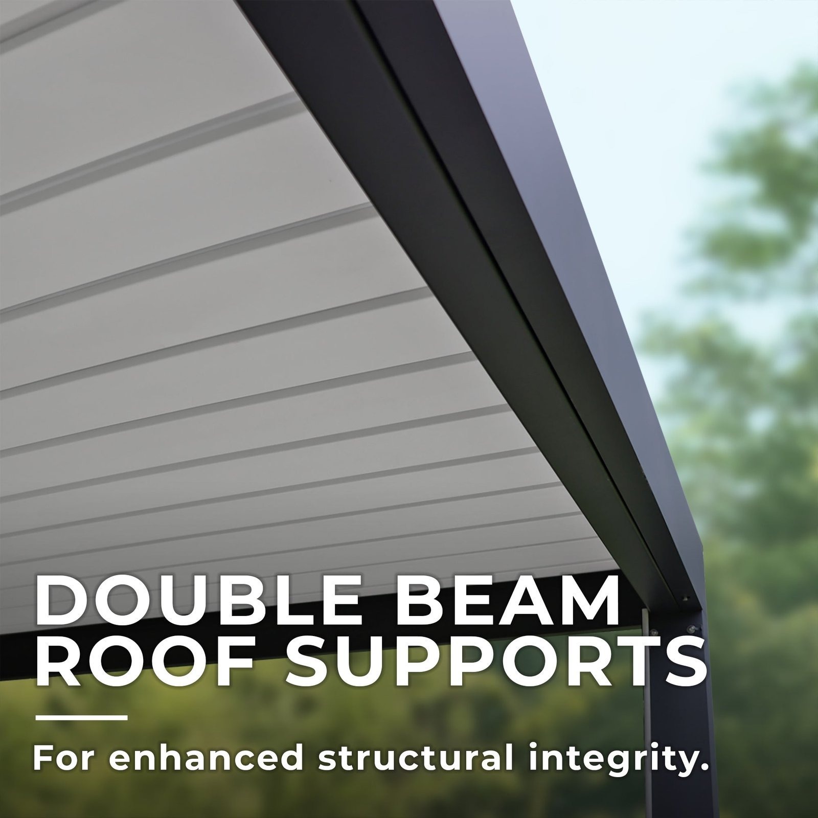 | Structural Support | Double beam roof + corner connectors + triangle gussets at each post |