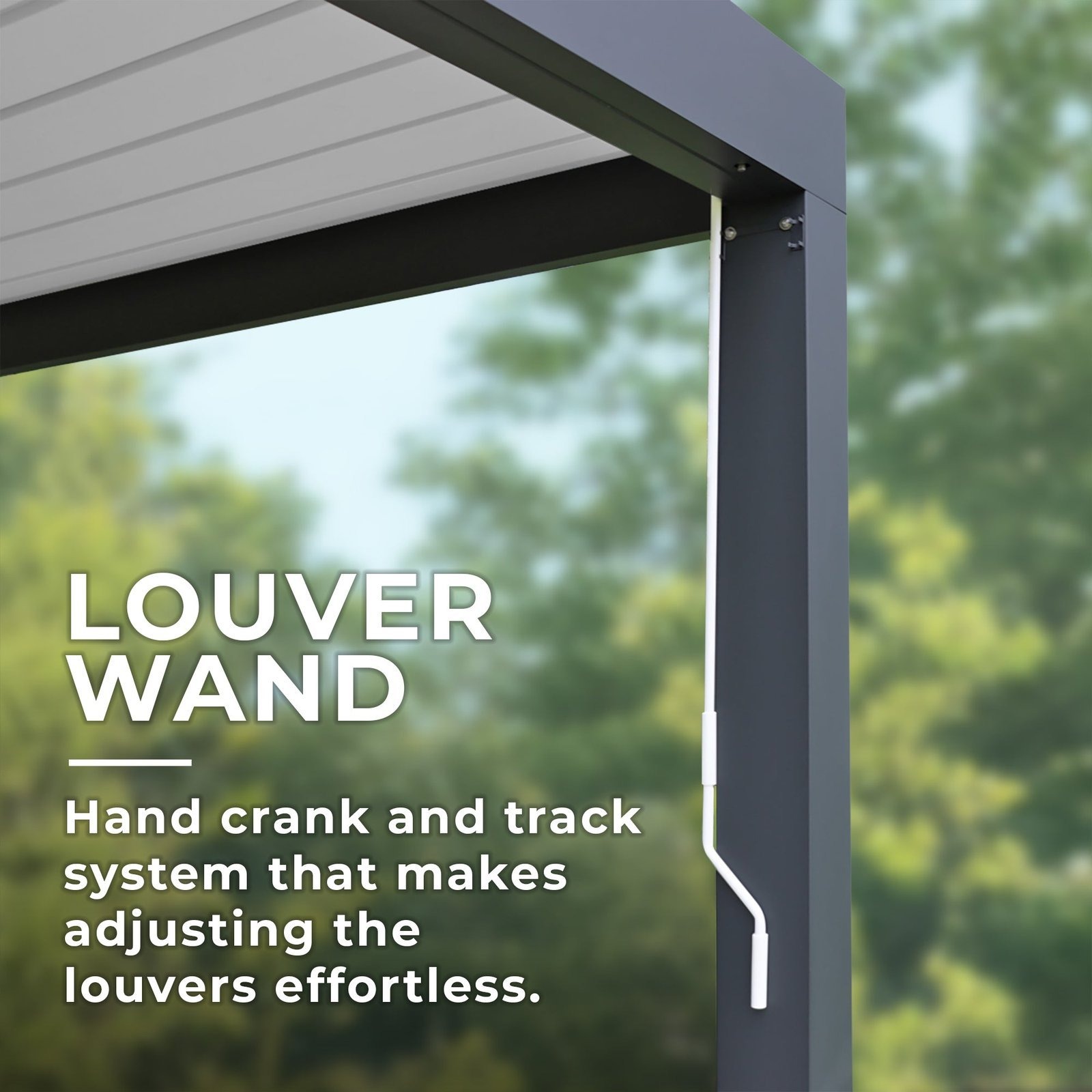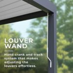 | Roof Adjustment | Hand crank — effortlessly open, close, or angle louvers |
